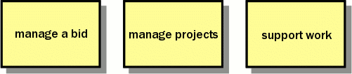 PRINCE2TM itself only addresses the management of Projects. However most Projects have their origins in a Proposal or a Bid, and so they may (or should?) have many common Products and Sub-processes. To achieve greater consistency between the Core Processes in this Volume (Bids and Projects), the principles of PRINCE2TM have been extended to include managing Bids, while common Sub-processes (e.g. Issue - and Change - Management), have been grouped into the third Core Process - Support Work.